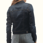 The ladies cropped denim jacket by Morab Wears has a slim-fit silhouette tailored for modern layering. It is made from 98% cotton and 2% elastane for a slight stretch. This ladies’ fashion jacket contours above the hips with a snug fit, and features long slim sleeves, stylish double chest flap pockets, and brass shank buttons.